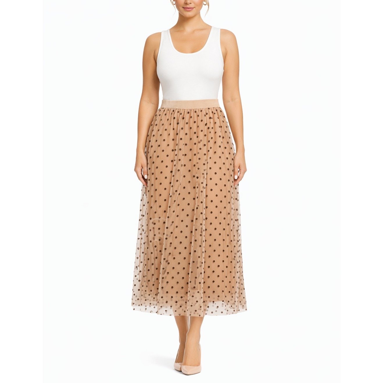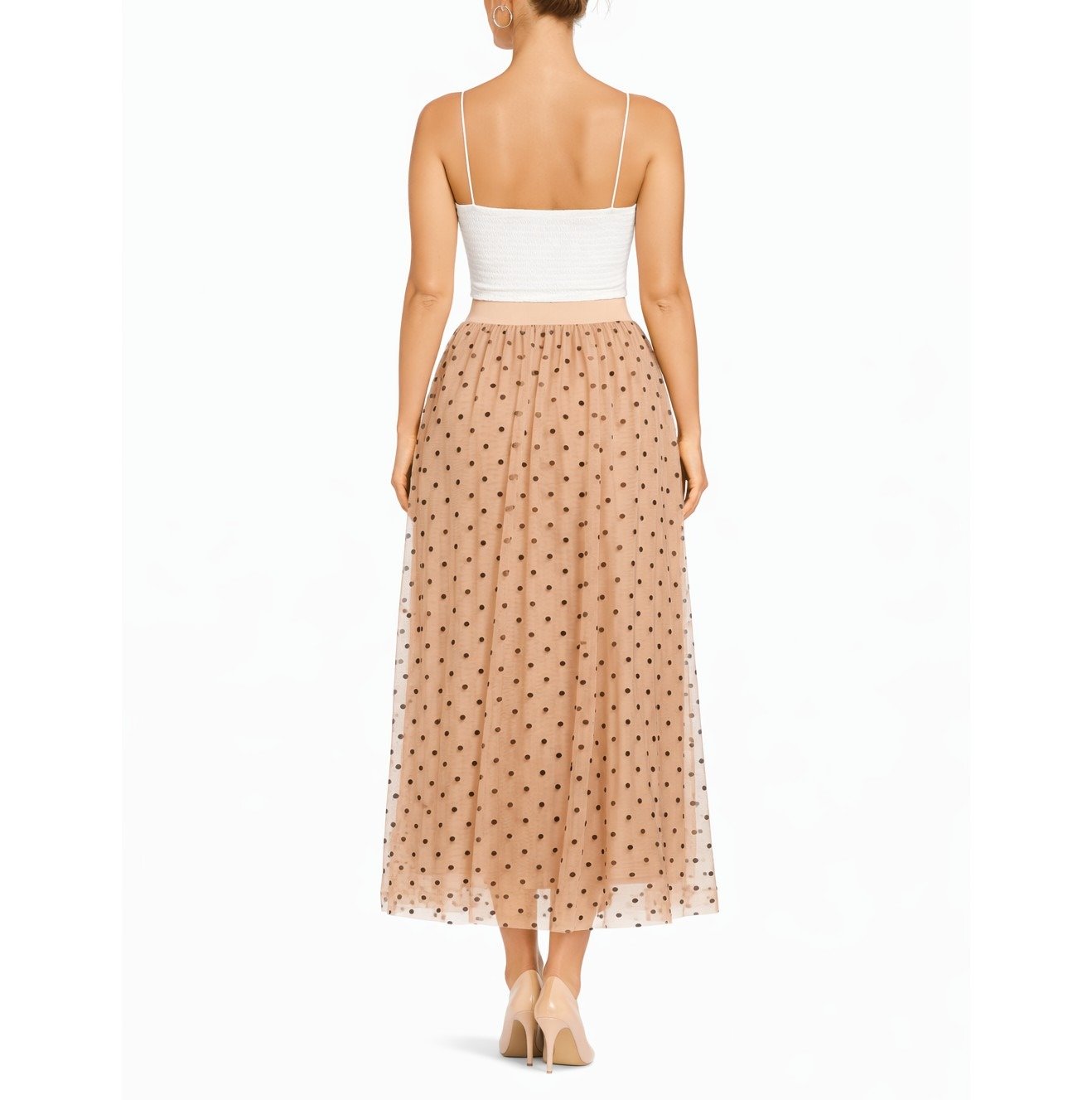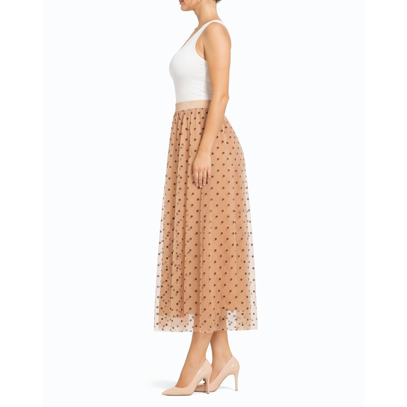 Béžová maxi sukňa s čiernymi bodkami – Tyl tylova