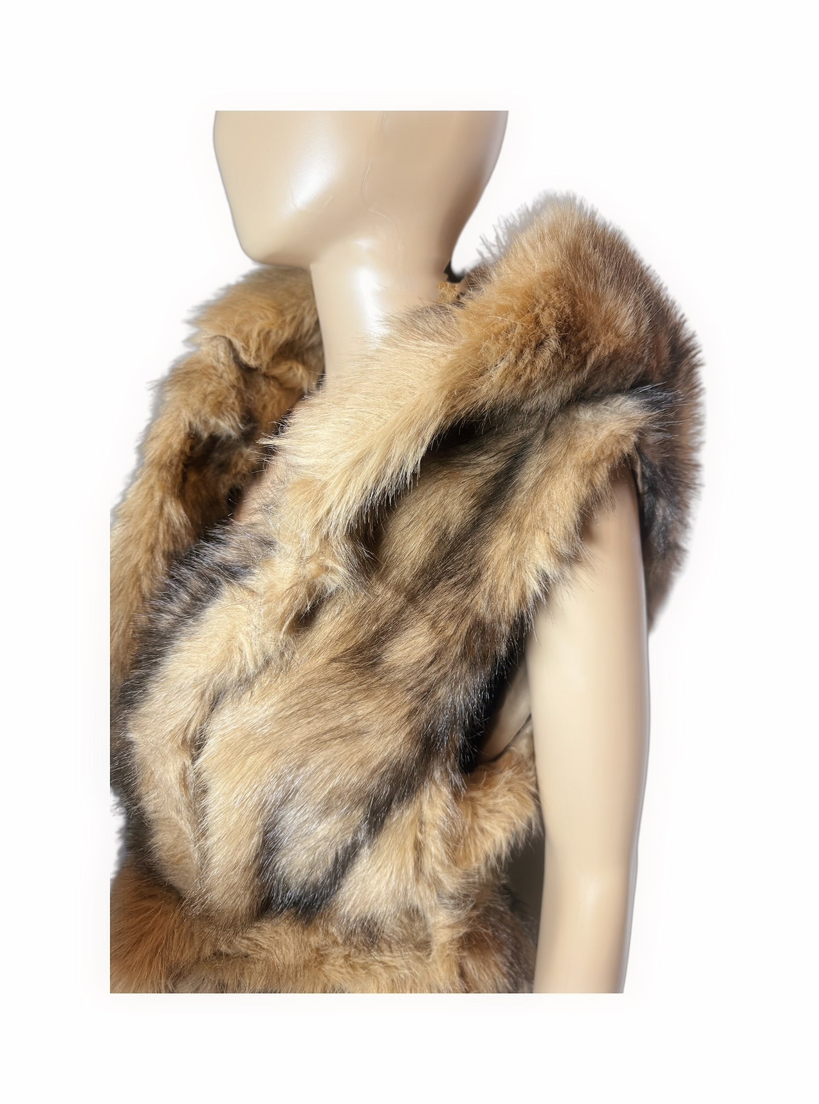- Teplo a štýl sa spájajú v tejto stredne dlhej veste z umelej kožušiny.