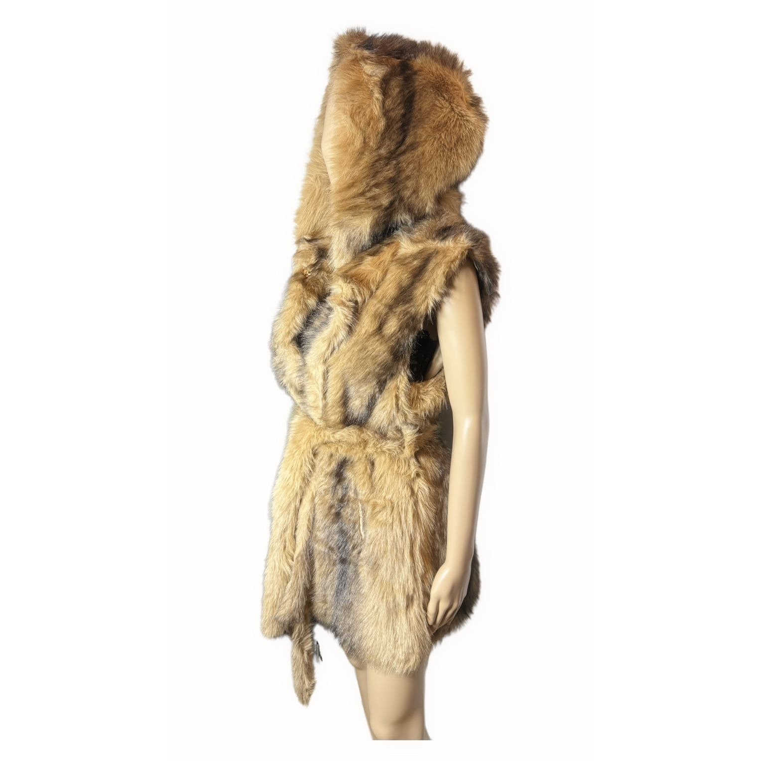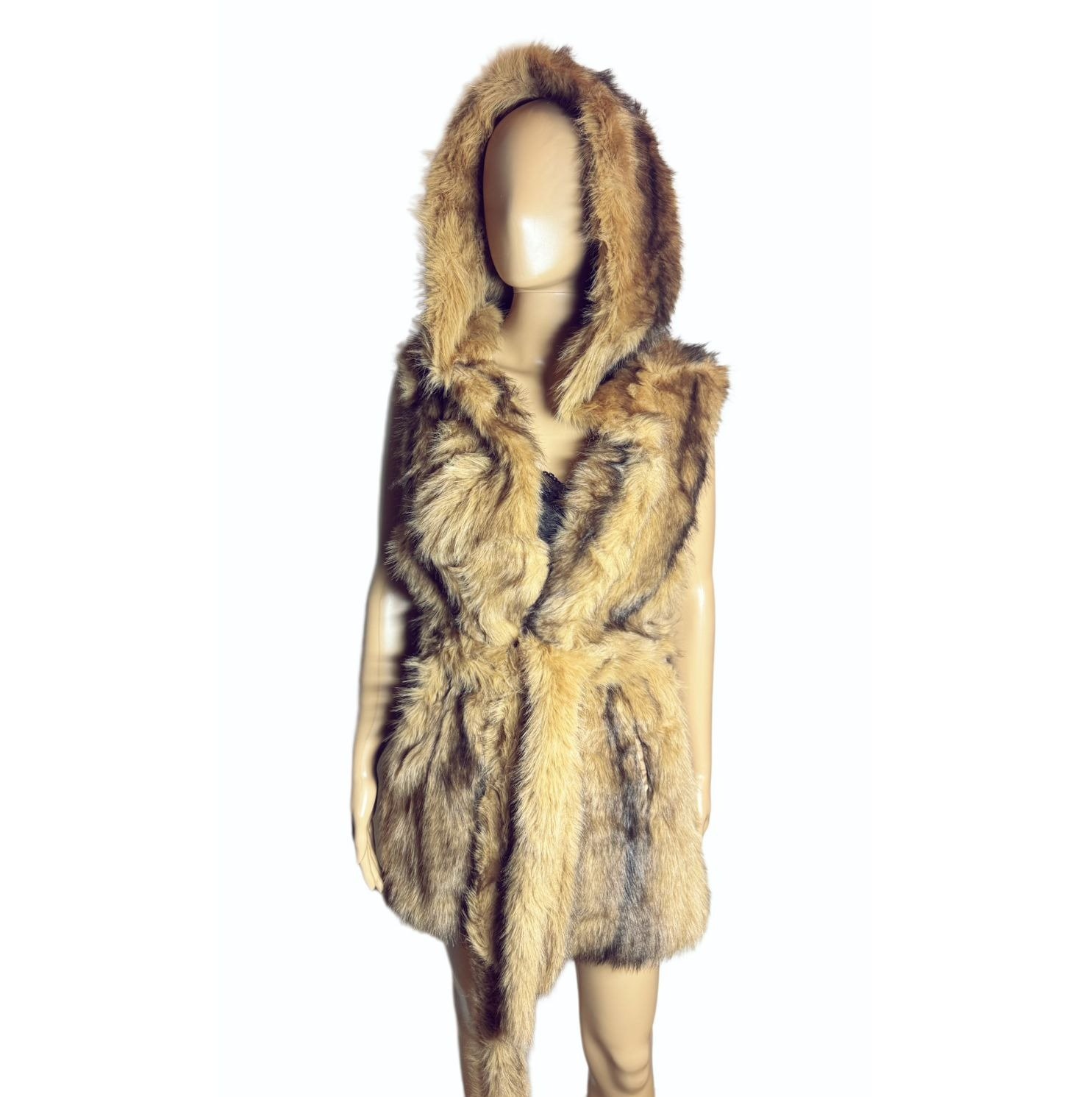 Damska kozusinova vesta kabat po bedra s kapucnou beige phanie