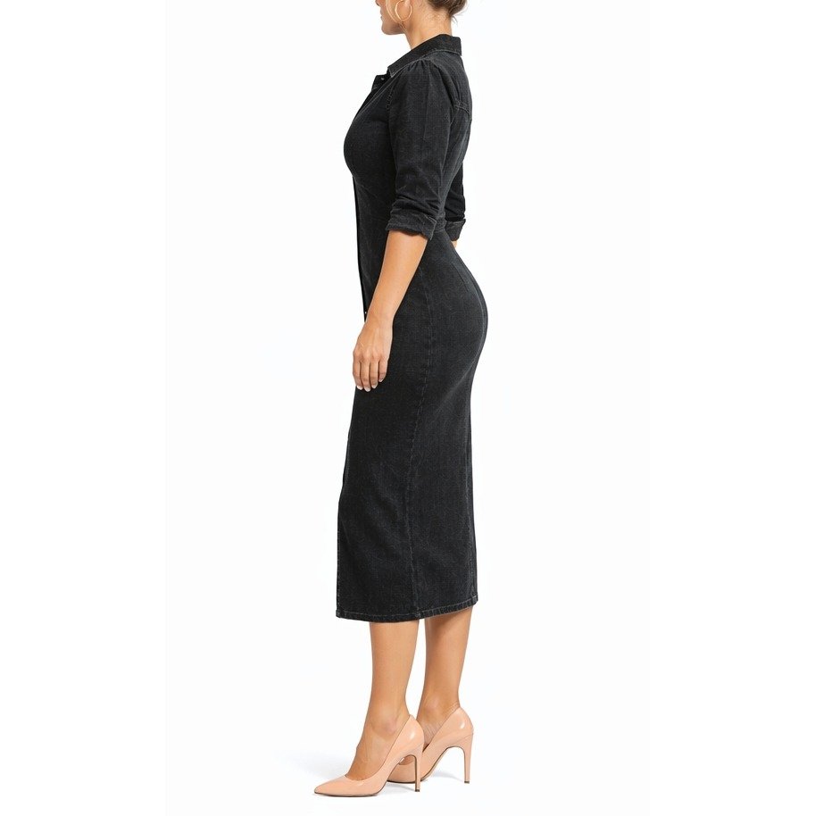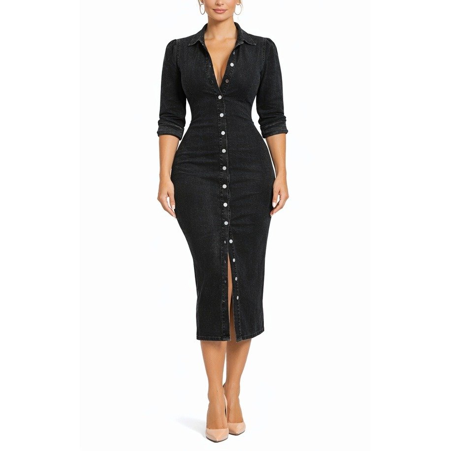 - Tieto priliehavé džínsové košeľové šaty s midi dĺžkou a efektnými 3/4 rukávmi sú ideálnou voľbou pre modernú ženu.