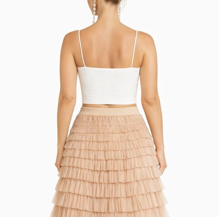 - Tip na styling: Tento top tvorí dokonalý pár s našou tylovou midi sukňou, čím vytvoríte outfit vhodný aj na svadbu či letnú záhradnú slávnosť.