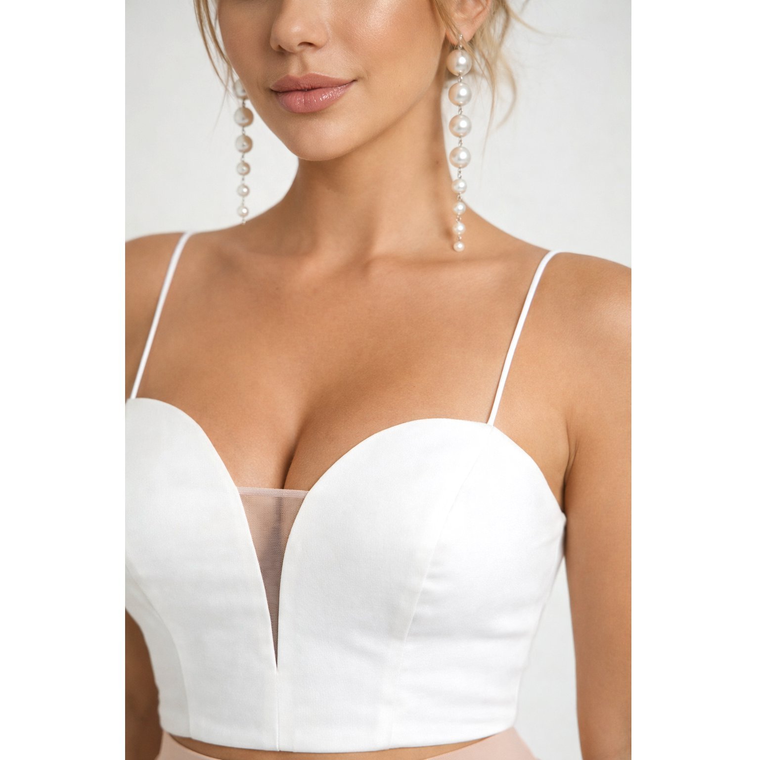 - Zvýraznite svoju ženskosť s týmto sofistikovaným bielym crop topom. Kombinácia zvodného výstrihu s jemnou sieťkou a prispôsobivého zadného dielu z neho robí “must-have” kúsok pre každú elegantnú dámu.