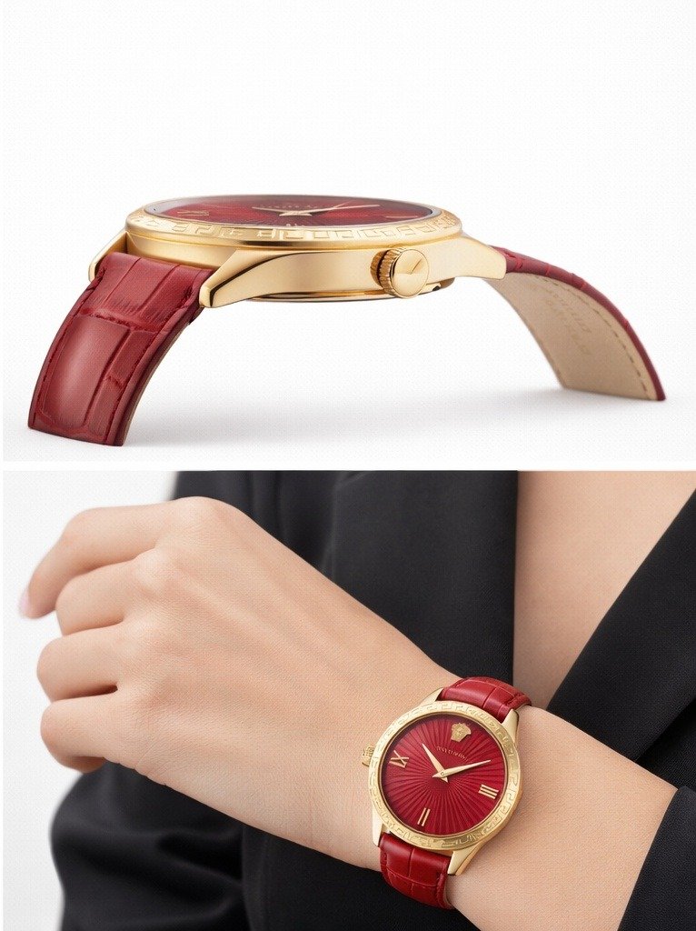 - Prežiarte každú chvíľu s luxusnými hodinkami Versace Mod. GRECA. Odvážny červený ciferník s ikonickým gréckym vzorom a zlaté detaily sú stvorené pre ženu, ktorá sa nebojí vyniknúť a oslniť svojím štýlom.