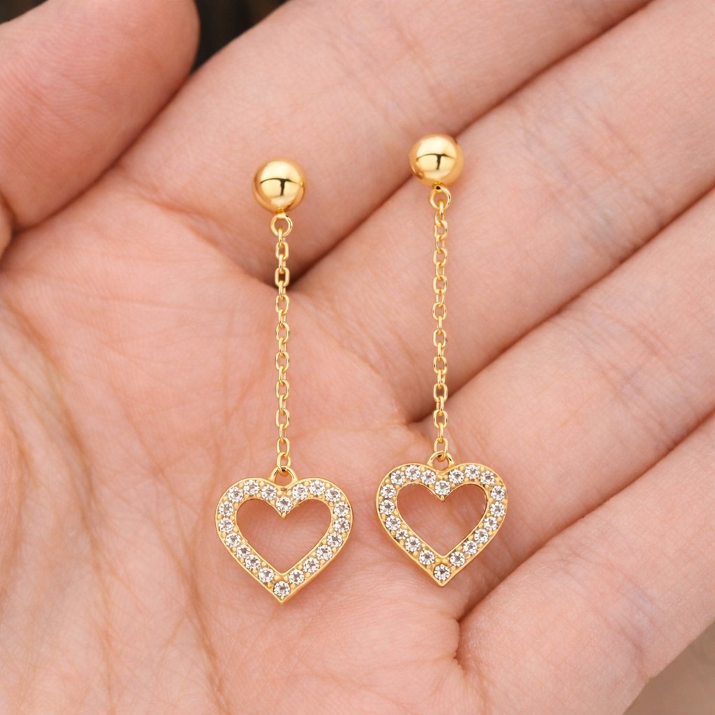 ZLATO Dámske visiace náušnice srdce zirkóny zlate 585/000 luxusne